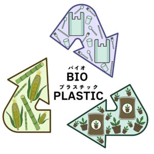 1、生分解性プラスチック・・・原料がバイオマス由来で生分解性を伴うプラスチック