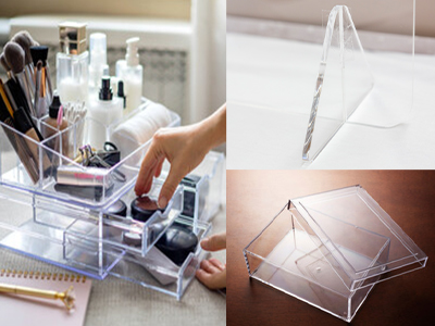 ディスプレー、照明器具、看板、船舶などの風防ガラス、時計、装身具、建築、光学用、水槽、テールランプ、サングラス、アクセサリー、各種レンズ、雑貨、日用品、食卓容器