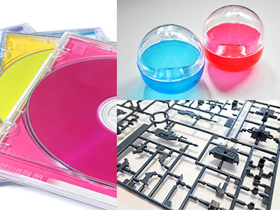 OA機器やCDケース、食品容器、プラモデル、プラ板、発泡スチロール、照明器具、洗面化粧台、冷蔵庫内部の棚、トナーカットリッジ、自動車用のランプレンズ